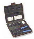 端接工具可以完成剪断,剥皮和端接工作, 防倒转的棘轮可以保证端接到位,可以更换的压接模具可以端接各类插头, 工具箱中工具包括:压接工具,可更换的压接模具,改锥和手提箱 |